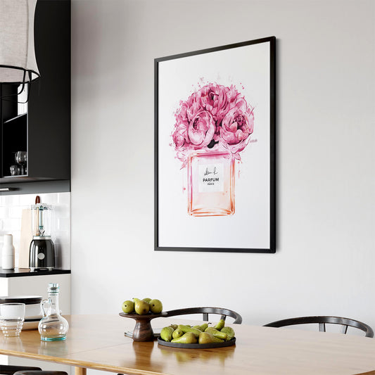 Pink Flowers Perfume Bottle Fashion Wall Art