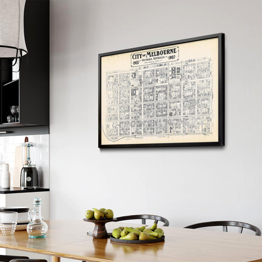 Vintage Melbourne CBD Street Map (1907) Wall Art
