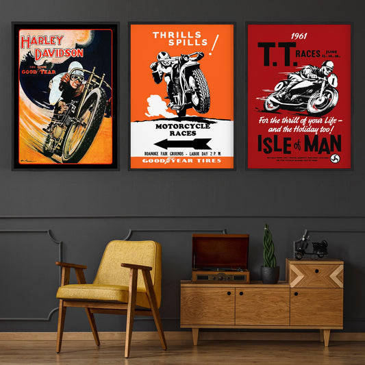 Set of Vintage Motorcycle Advert Man Cave Wall Art #1