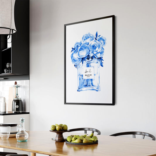 Blue Floral Perfume Bottle Fashion Flowers Wall Art #2