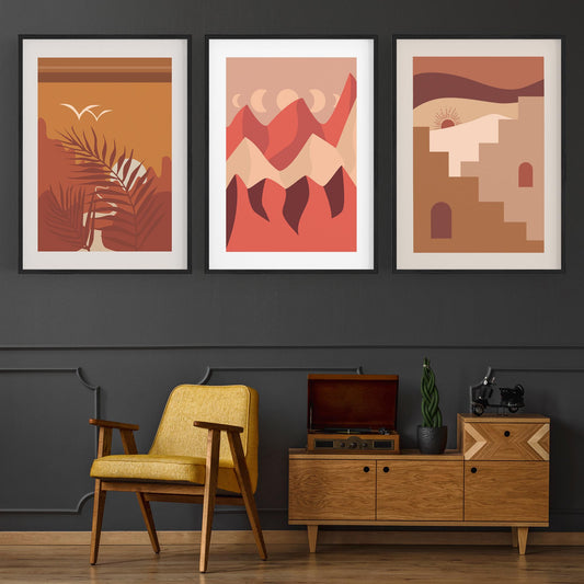 Set of 3 Terracotta Abstract Kitchen Wall Art
