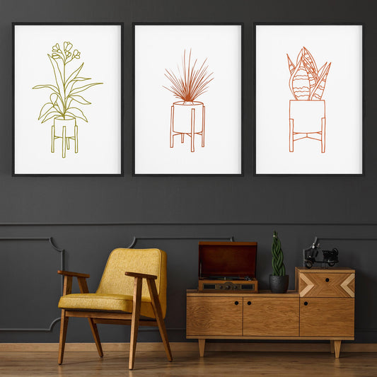 Set of Abstract Plants Kitchen Hallway Wall Art