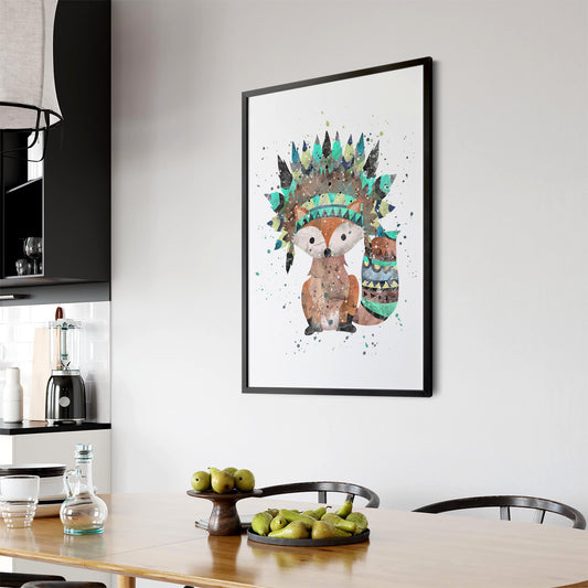 Native Fox Cartoon Nursery Bedroom Boho Wall Art