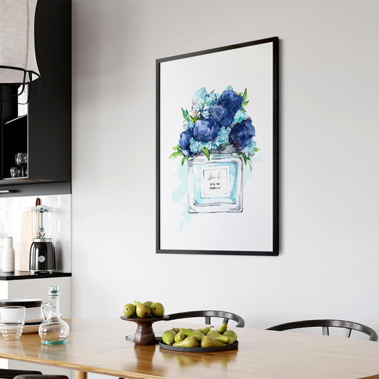 Blue Floral Perfume Bottle Fashion Flowers Wall Art #1