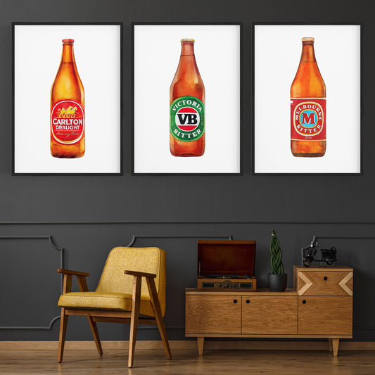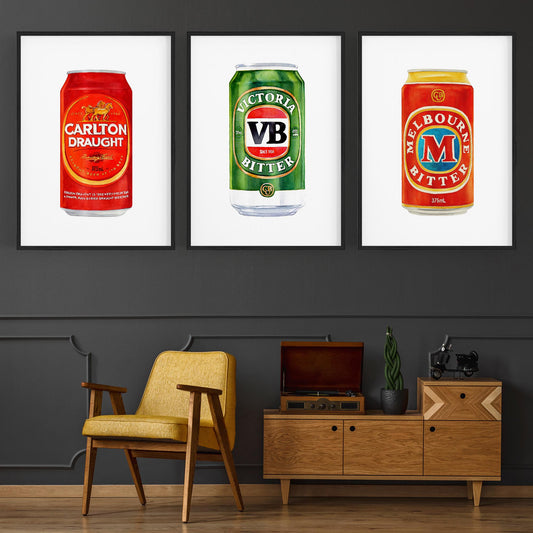 Set of Aussie Beer Tinnie Paintings Shed Wall Art