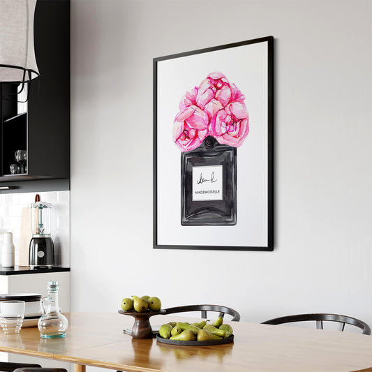 Neon Pink Floral Perfume Bottle Fashion Wall Art