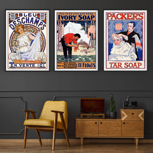 Set of Vintage Soap Adverts Laundry Room Wall Art