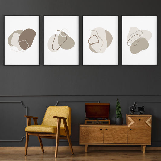 Set of 4 Abstract Neutral and Pastel Minimal Shape Wall Art