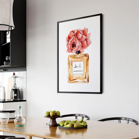 Peach Floral Perfume Bottle Fashion Wall Art #2