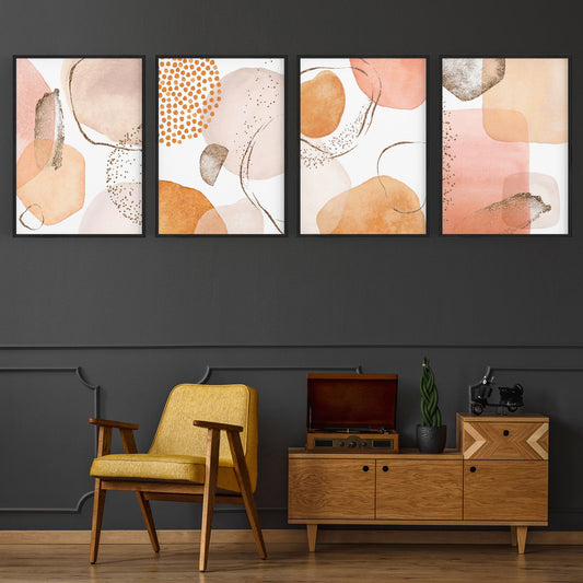 Set of 4 Abstract Peach and Nude Painting Wall Art