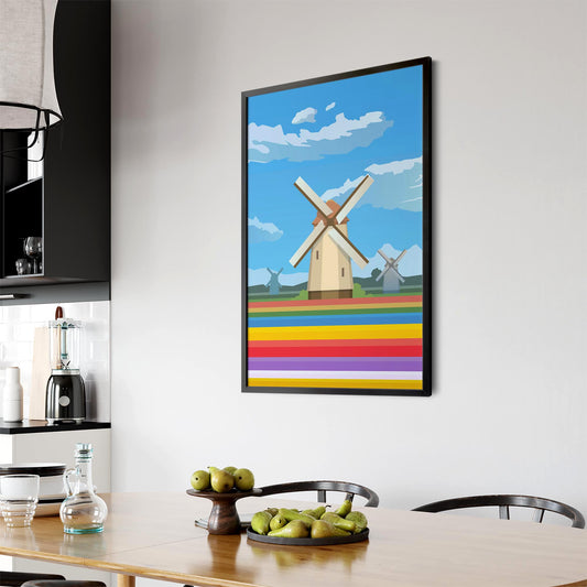 Retro Windmill, Netherlands Vintage Travel Wall Art