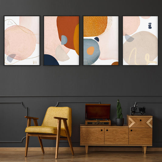 Set of 4 Abstract Shape Minimal Nude Colour Wall Art
