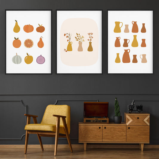 Set of 3 Terracotta Abstract Kitchen Wall Art