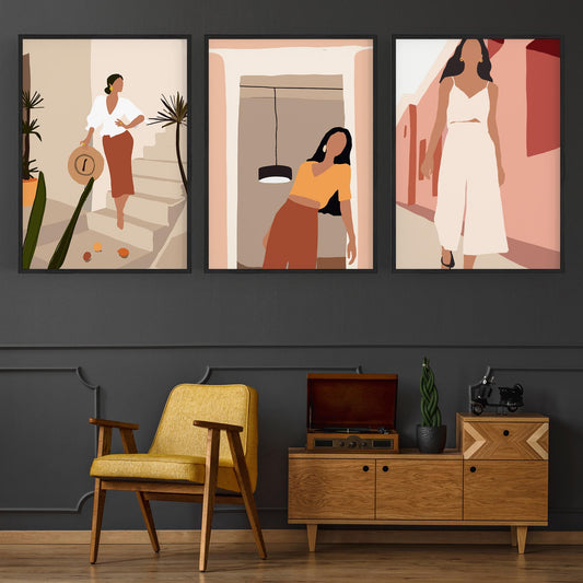 Set of Abstract Fashion Girls Bedroom Wall Art
