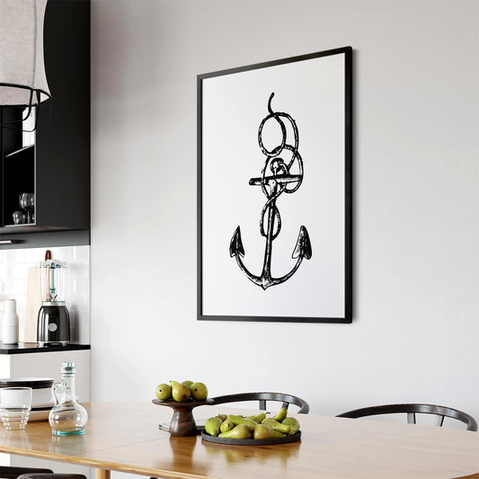 Anchor Drawing Nautical Coastal Bathroom Wall Art #1