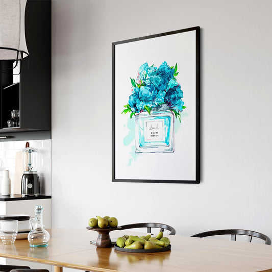 Teal Floral Perfume Bottle Fashion Wall Art #1