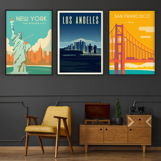 Set of Retro Travel Wall Art (USA Travel)