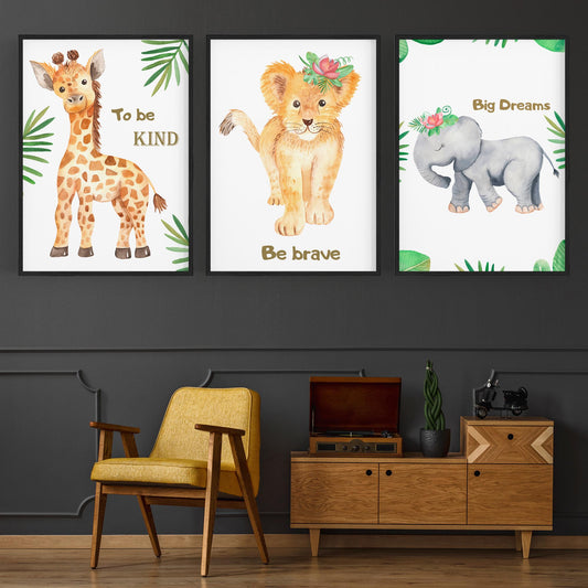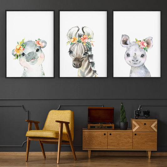 Set of Cute Baby Safari Animals Nursery Wall Art #4