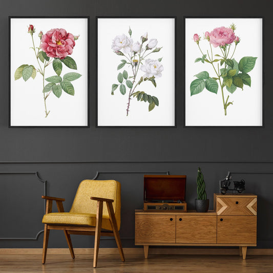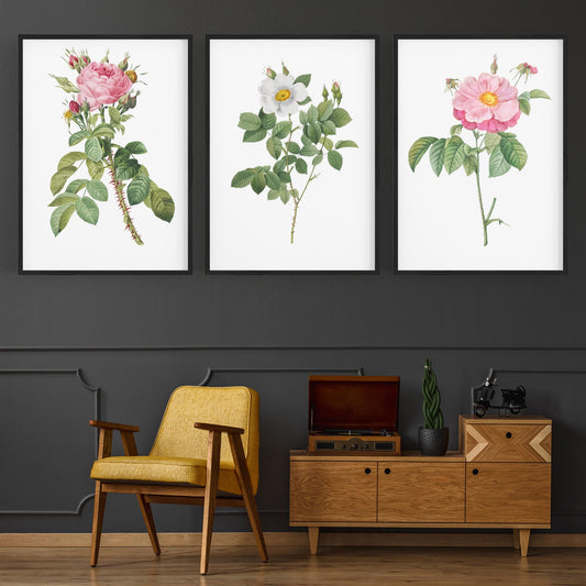 Set of Pink Floral Vintage Botanical Wall Art #2