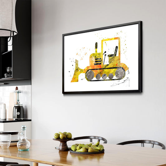 Yellow Digger Boys Bedroom Nursery Toddler Art #1