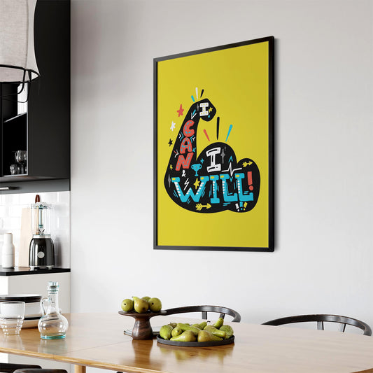 "I Can I Will" Yellow Fitness Gym Quote Wall Art