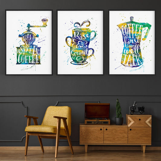Set of Coffee Lovers Kitchen Cafe Style Wall Art