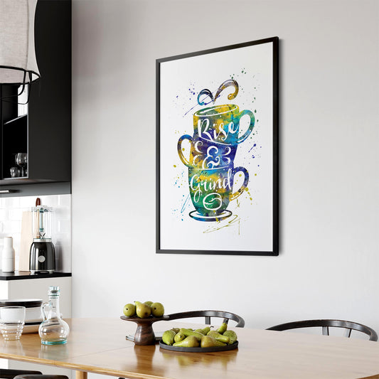 "Rise & Grind" Cafe Coffee Kitchen Morning Wall Art