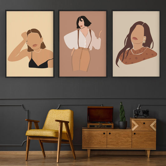 Set of Retro Fashion Minimal Bedroom Wall Art