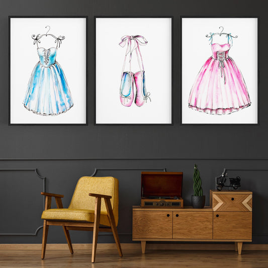 Set of Cute Ballerina Girls Bedroom Ballet Wall Art