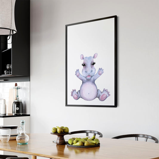 Cute Baby Hippo Nursery Animal Gift Wall Art #1
