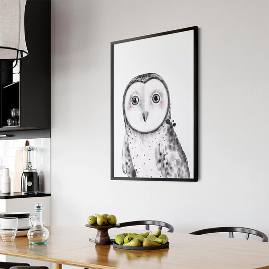 Cute Blushing Baby Owl Nursery Animal Wall Art