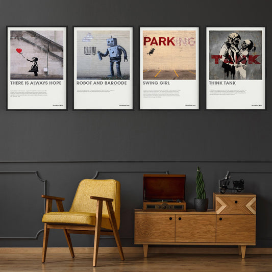 Set of 4 Banksy Graffiti Gallery Style Urban Street Wall Art