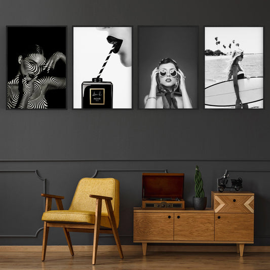 Set of 4 Fashion Inspired Black and White Bedroom Photography Wall Art