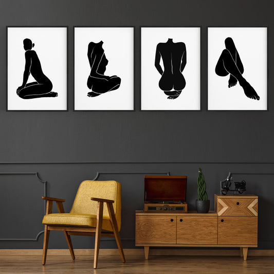 Set of 4 Nude Female Shape Silhouette Bedroom Minimal Wall Art