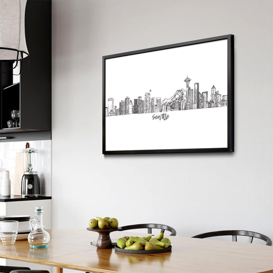 Seattle USA Cityscape Drawing Minimal Wall Art