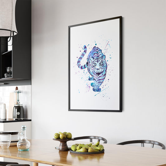 Blue Tiger Cute Animal Painting Wall Art