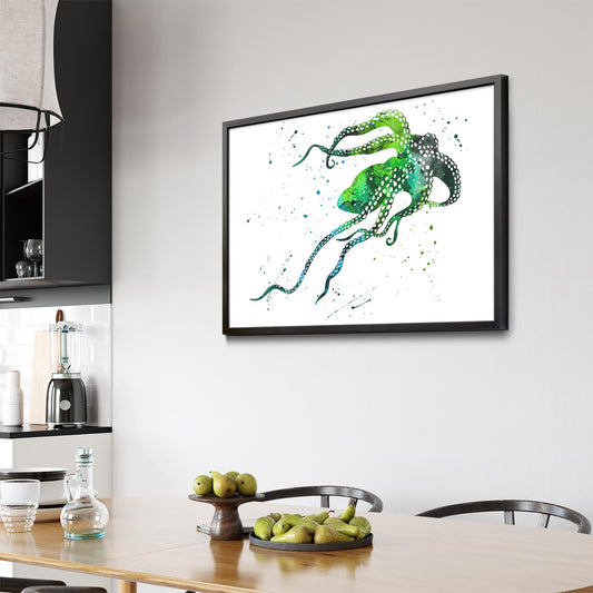 Green Cute Squid Painting Sealife Wall Art