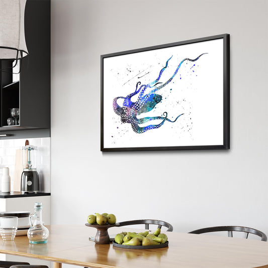 Blue Cute Squid Painting Sealife Nursery Wall Art