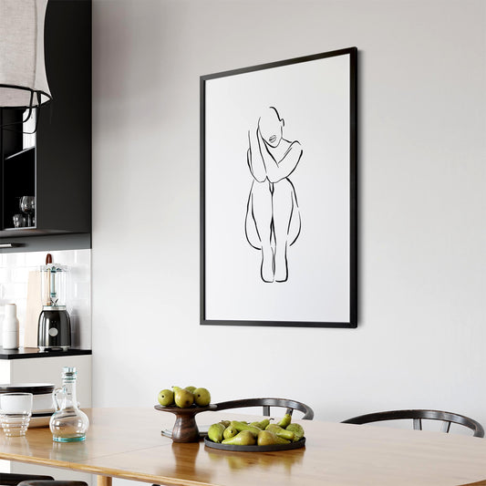 Posed Nude Female Body Minimal Drawing Wall Art #1