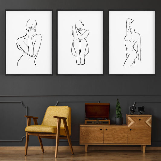 Set of Nude Body Drawing Female Minimal Wall Art #3
