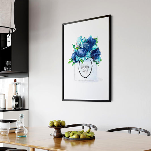 Blue Floral Shopping Bag Fashion Flowers Wall Art