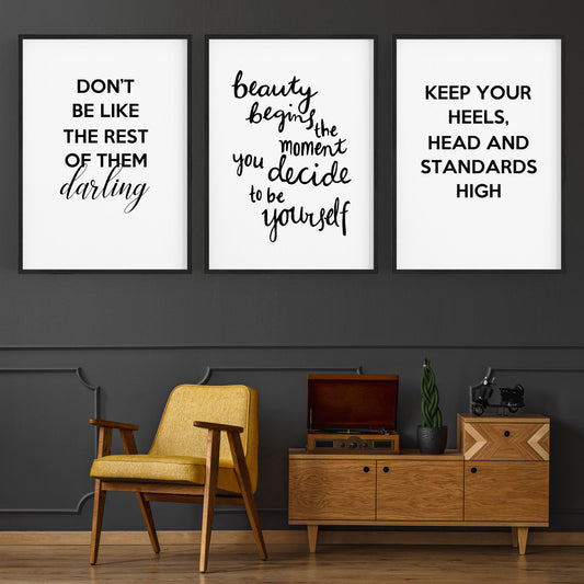 Set of 4 Inspirational Fashion Quotes Bedroom Wall Art