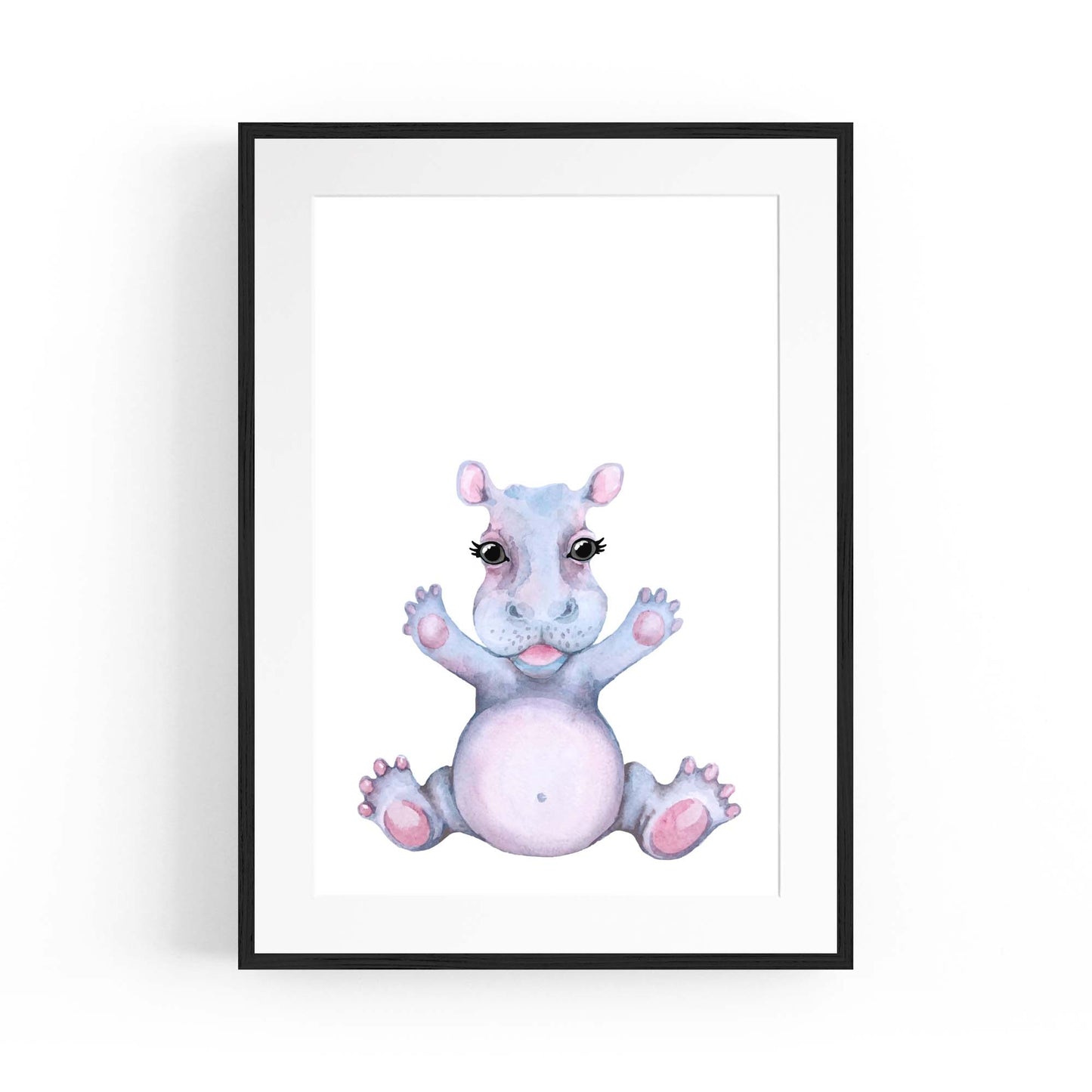 Cute Baby Hippo Nursery Animal Gift Wall Art #1